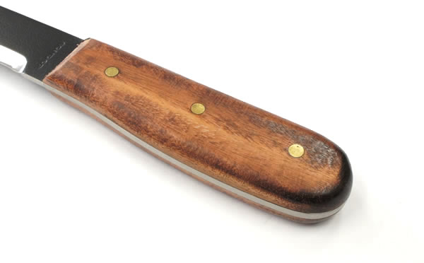 ハンドルはウォールナット材、ブレードよりハンドルが長く、良く力が入ります。