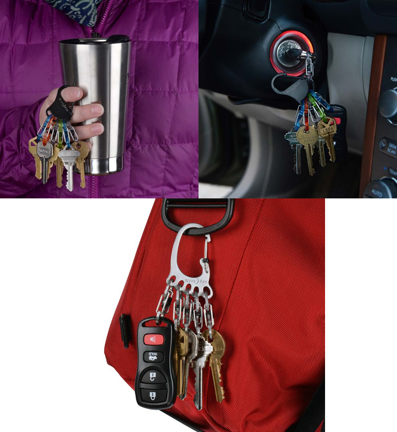 各カラビナは取り外し可能、ベルト通しやバッグなどに取り付けて使用できます。