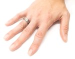 ブロンズの象眼細工が施されたダマスカスリングです。