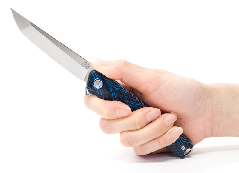 ハンドルは耐久性高いブラック&ブルーのG10ハンドル