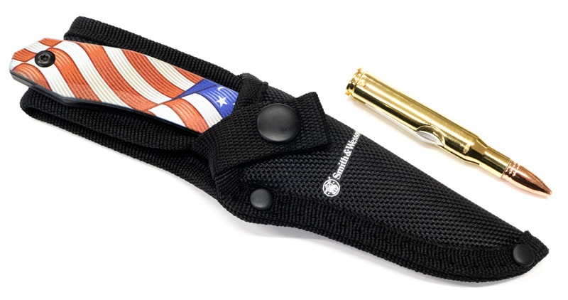 銃器の老舗S&Wのハンドルがアメリカ星条旗のフルタングナイフと