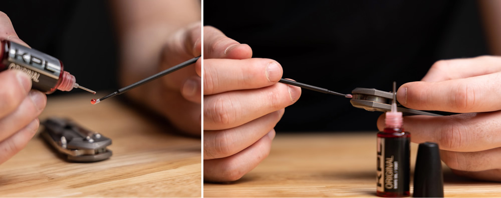 フリッパーナイフなどの可動部に精密で繊細な給油が可能です。