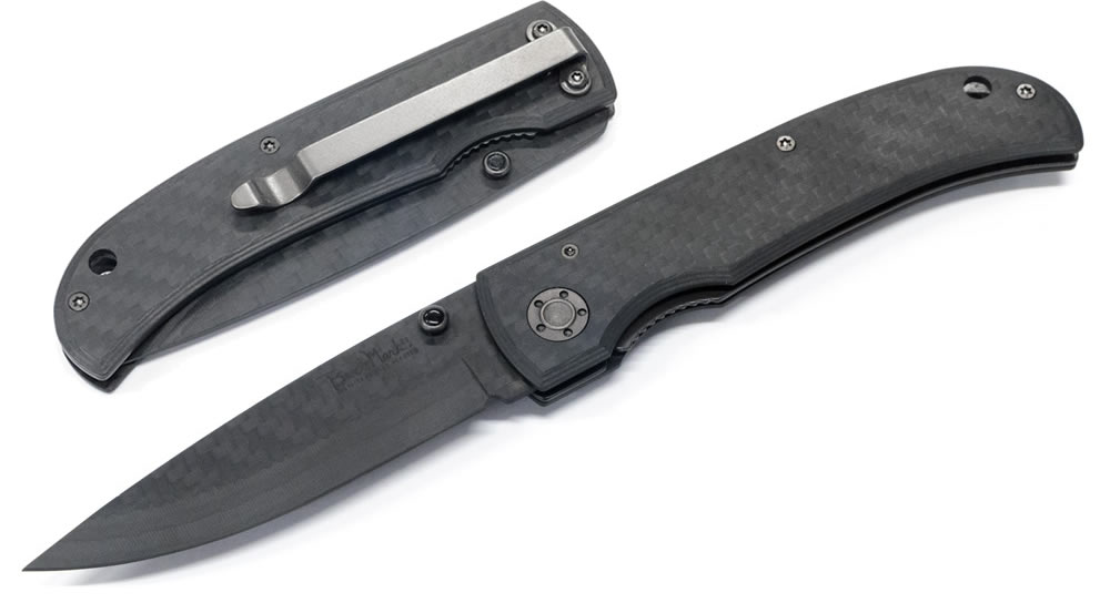強靭なカーボンファイバー製ブレードとハンドルの折りたたみナイフです。