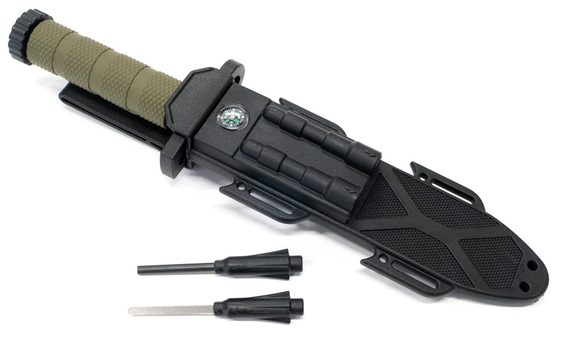 ナイフシースにシャープナー、ファイヤースターター、ホイッスルを装備