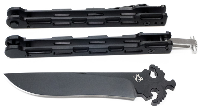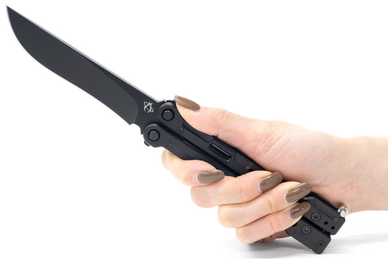 洗練されたブラック仕上げと無駄のないフォルムのマンティスバタフライナイフです。