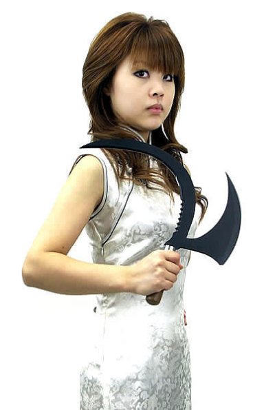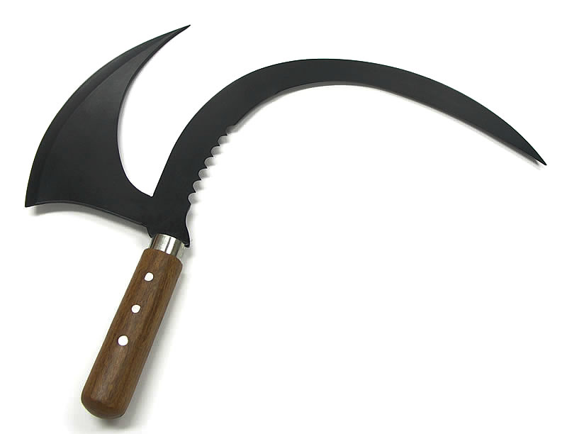 鎌と斧が合体したようなとても面白いナイフです。鎌の部分にはセレーションが装備してあります。このナイフがあれば一石二鳥!?1本で草刈りと木が切れます。全長約315mm